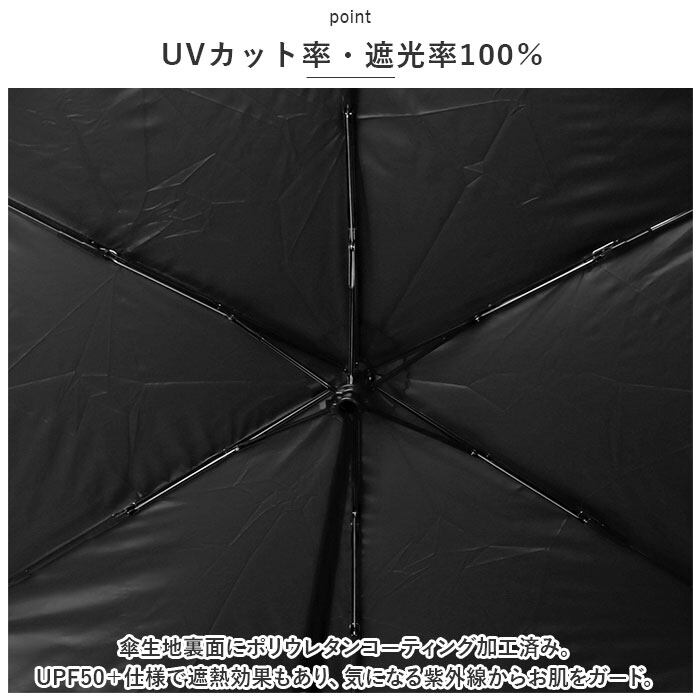・傘生地裏面にポリウレタンコーティング加工済み。UPF50+仕様で遮熱効果もあり、気になる紫外線からお肌をガード。