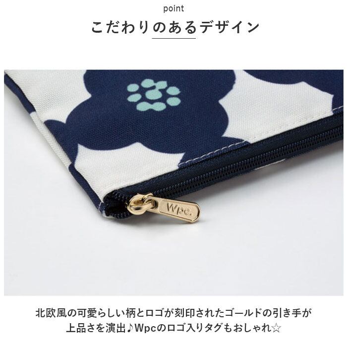 ・北欧風の可愛らしい柄とロゴが刻印されたゴールドの引き手が上品さを演出♪Wpcのロゴ入りタグもおしゃれ☆