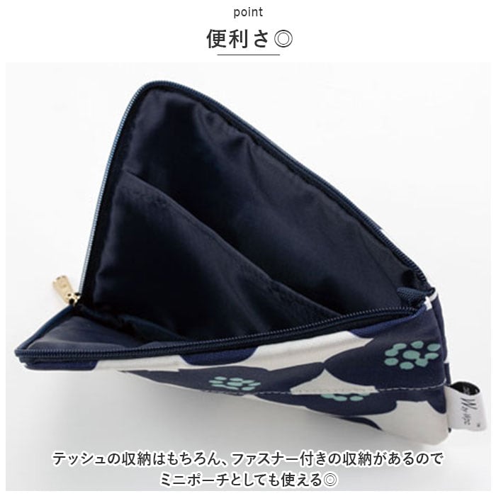 ・テッシュの収納はもちろん、ファスナー付きの収納があるのでミニポーチとしても使える◎
