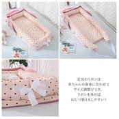 ・足元のリボンは赤ちゃんの身体に合わせてサイズ調整ができ、リボンを外せばおむつ替えもしやすい!