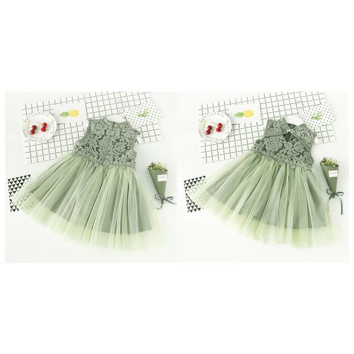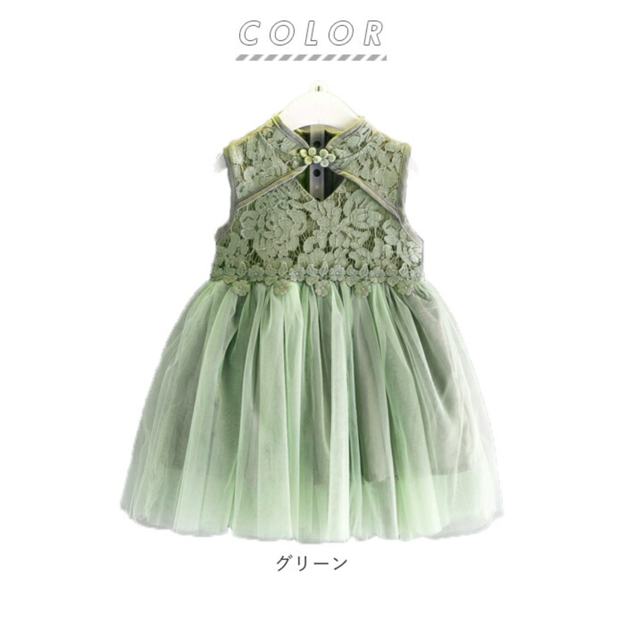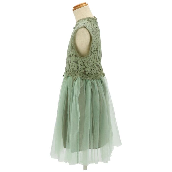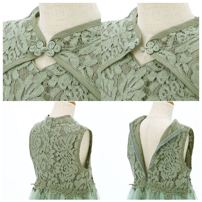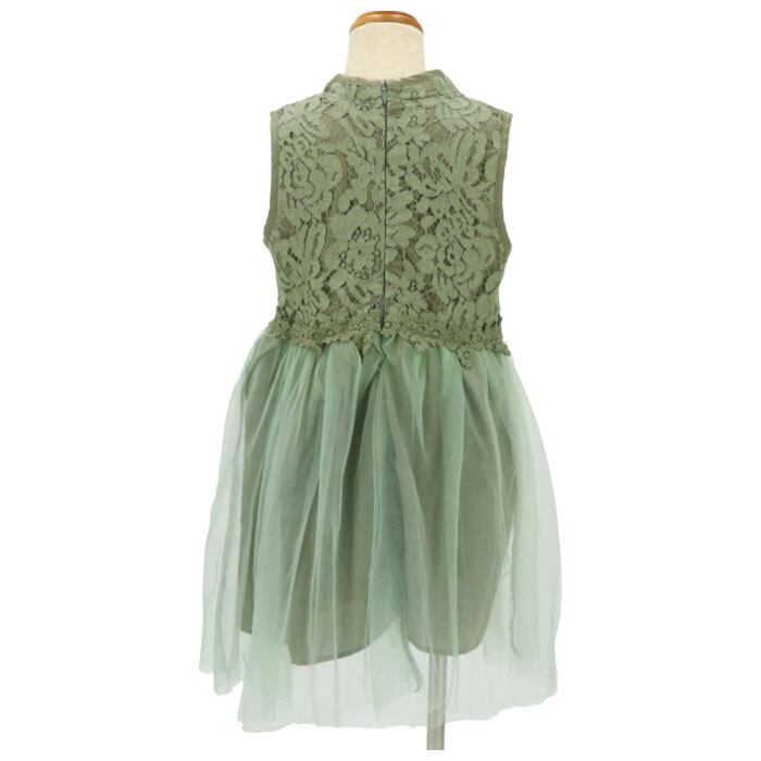 ・アンティーク風の花柄レースが可愛い!ちょっぴりくすませたモスグリーンがお洒落なキッズ用ドレス☆