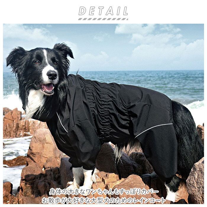 ・身体の大きなワンちゃんもすっぽりカバー。お散歩が大好きな大型犬のためのレインコート。