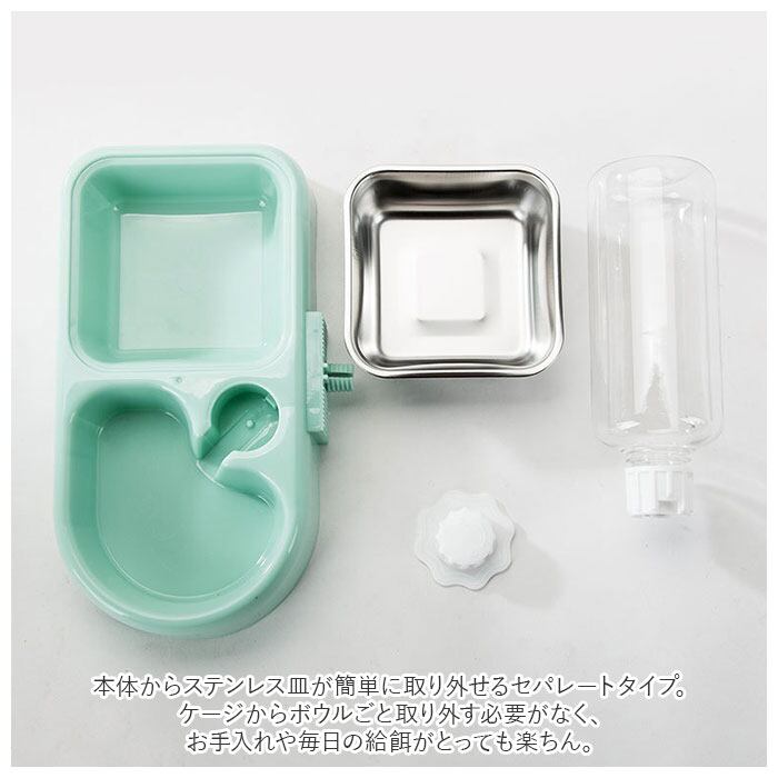 ・フードボウル本体からステンレス皿が簡単に取り外せるセパレートタイプ。ケージからボウルごと取り外す必要がなく、お手入れや毎日の給餌がとっても楽ちん。
