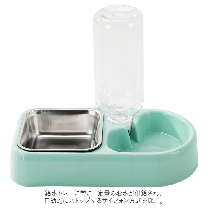 ・給水トレーに常に一定量のお水が供給され、自動的にストップするサイフォン方式を採用。ペットがいつでも新鮮なお水を飲むことができるから、飼い主さんがお留守中でも安心♪