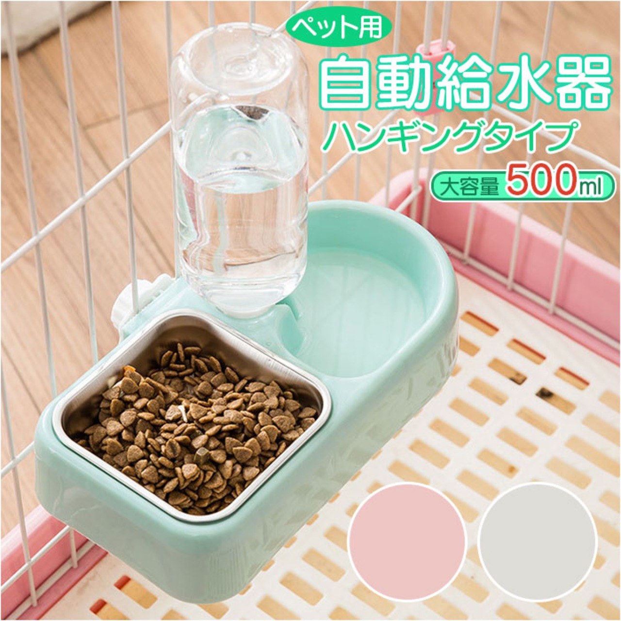 ・飼い主さんが外出中でも安心!フードボウルと水飲みトレーが一体になった「ペット用自動給水器(ハンギングタイプ)」が新登場。