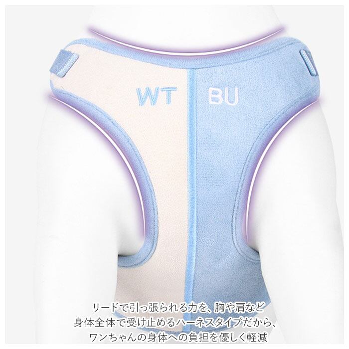 ・リードで引っ張られる力を、胸や肩など身体全体で受け止めるハーネスタイプだから、ワンちゃんの身体への負担を優しく軽減。