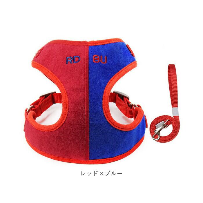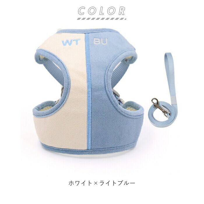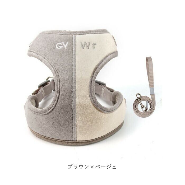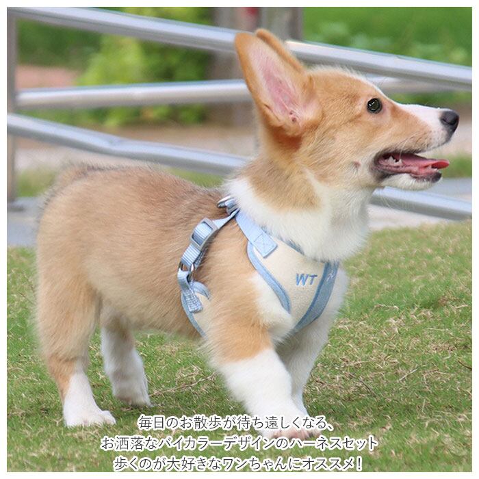 ・毎日のお散歩が待ち遠しくなる、お洒落なバイカラーデザインのハーネスセット。歩くのが大好きなワンちゃんにオススメ!