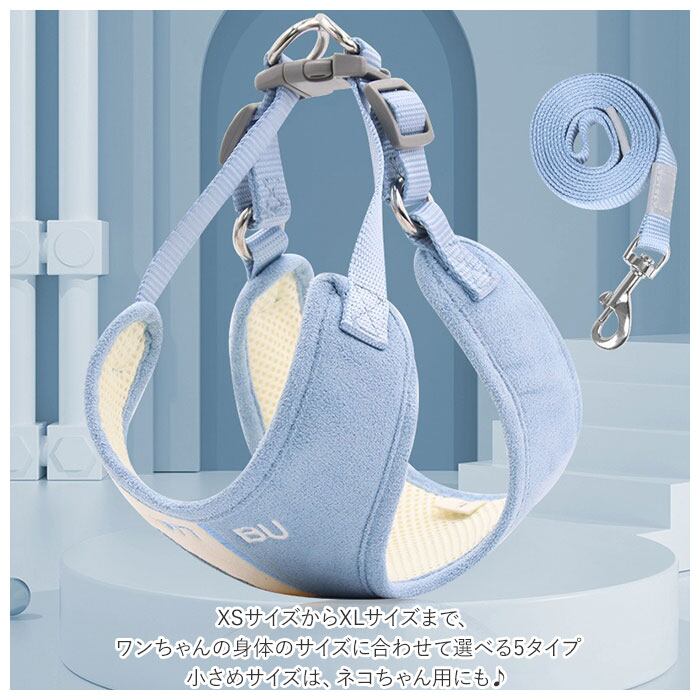 犬 リード ハーネス セット 通販 ハーネスリード 猫 一体型 簡単 着脱 調節可能 引っ張り防止 抜けにくい ソフト デザイン かわいい 小型犬 中型犬 ネコ ねこ いぬ イヌ 咳き込み軽減 散歩 出かけ用