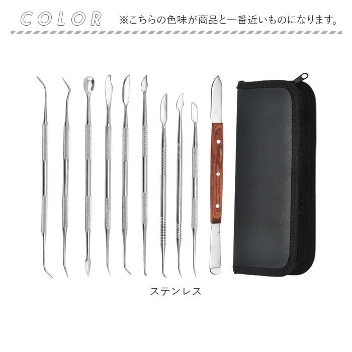 ・削る・整える・掻き出すなどの作業がラクラク!ものづくりに便利なケース付きの「ステンレス工作スパチュラ10本セット」が新登場。