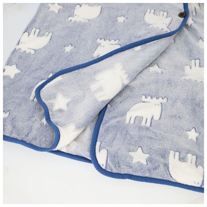 ・mozのトレードマーク「エルク」(ヘラジカ)と星が散りばめられ、優しい色使いが全身で北欧の雰囲気を感じられるデザイン。