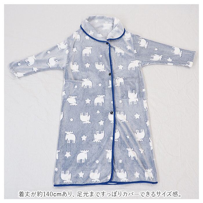 ・着丈が約140cmあり、足元まですっぽりカバーできるサイズ感。寒い冬の日そのままベッドから出ても足先が冷えにくい。
