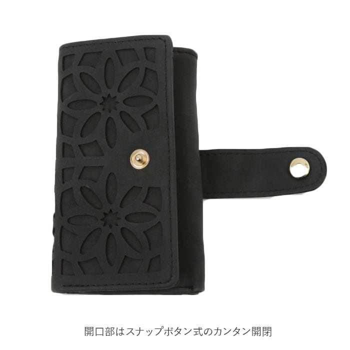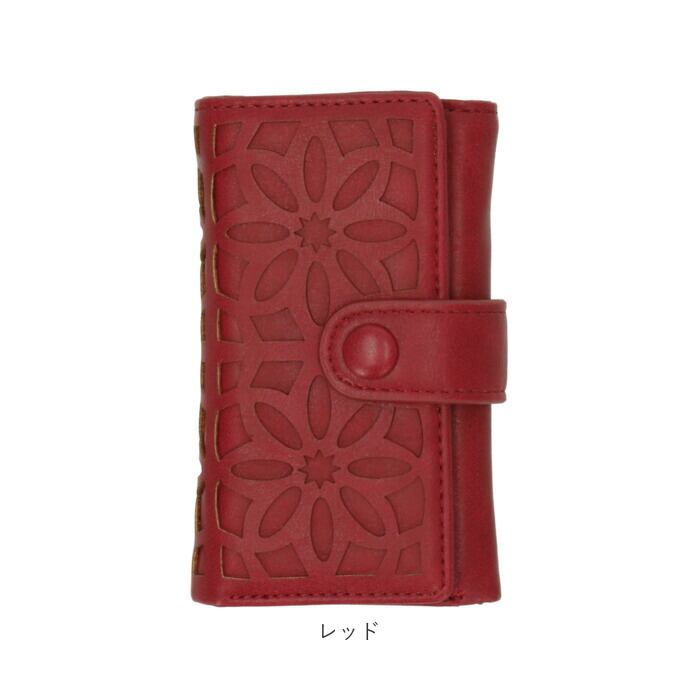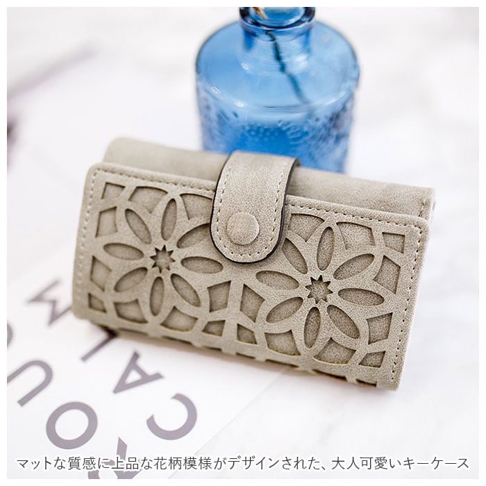 ・マットな質感に上品な花柄模様がデザインされた、大人可愛いキーケース。