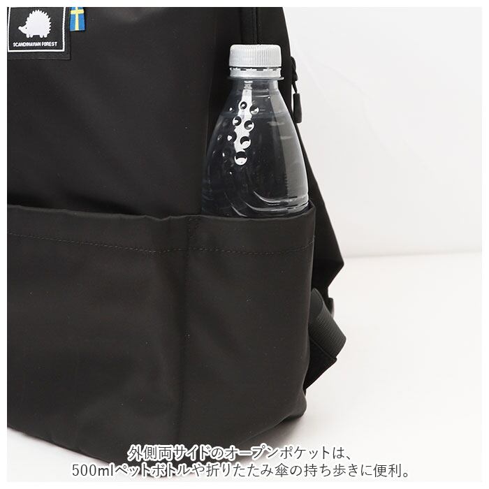 ・外側両サイドのオープンポケットは、500mlペットボトルや折りたたみ傘の持ち歩きに便利。