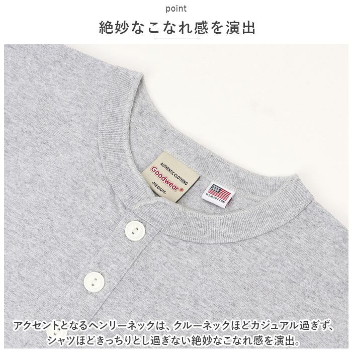 「Goodwear」からヘビーウェイトな「USAコットン袖リブヘンリーネックロンT」が発売。