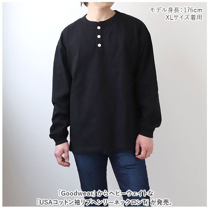 Goodwear USAコットン袖リブヘンリーネックロンT