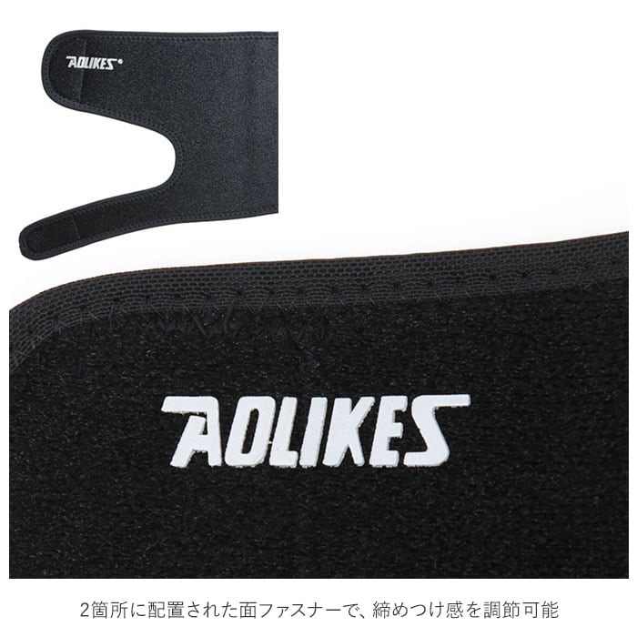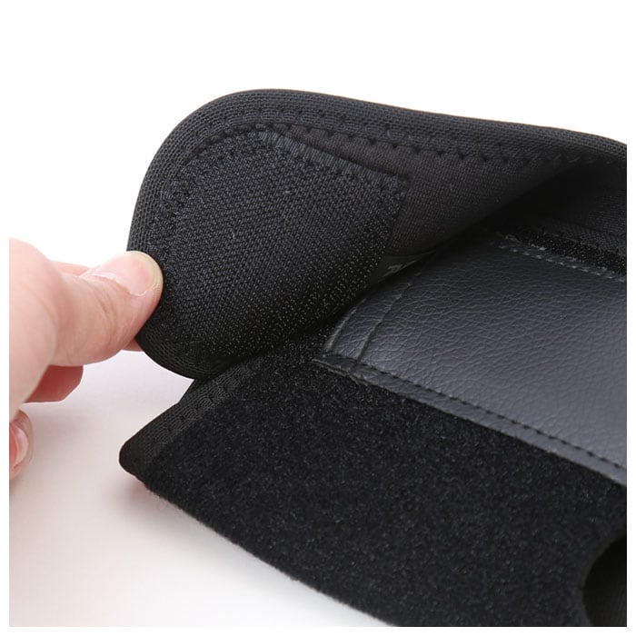 2箇所に配置された面ファスナーで、締めつけ感を調節可能。