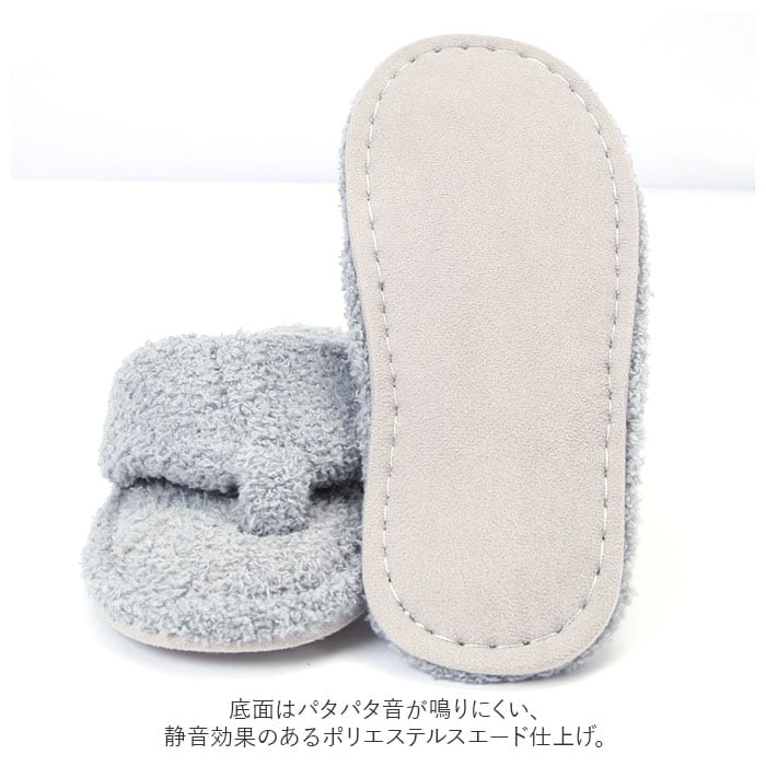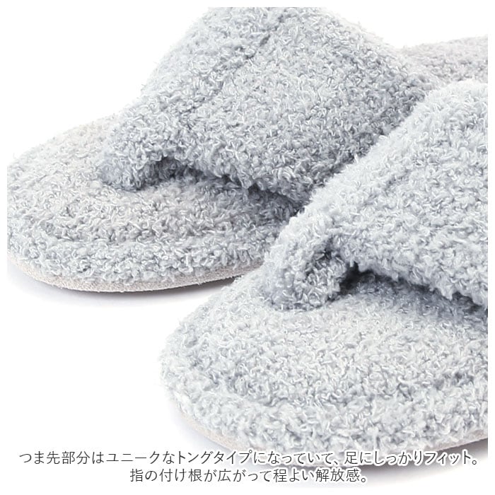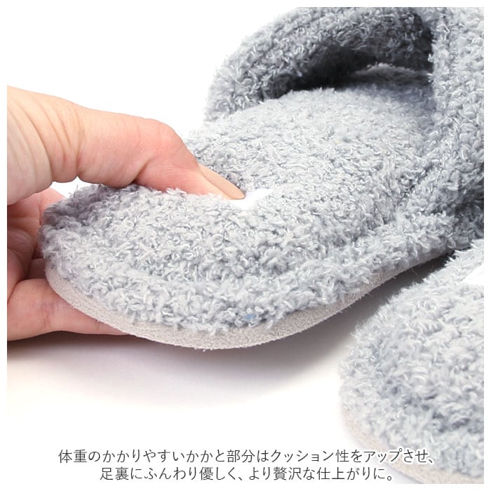 ・アッパー部分はもちろん、足裏が触れるインソール部分も、全てに毛足の長いふわっとしたタオル生地を使用。