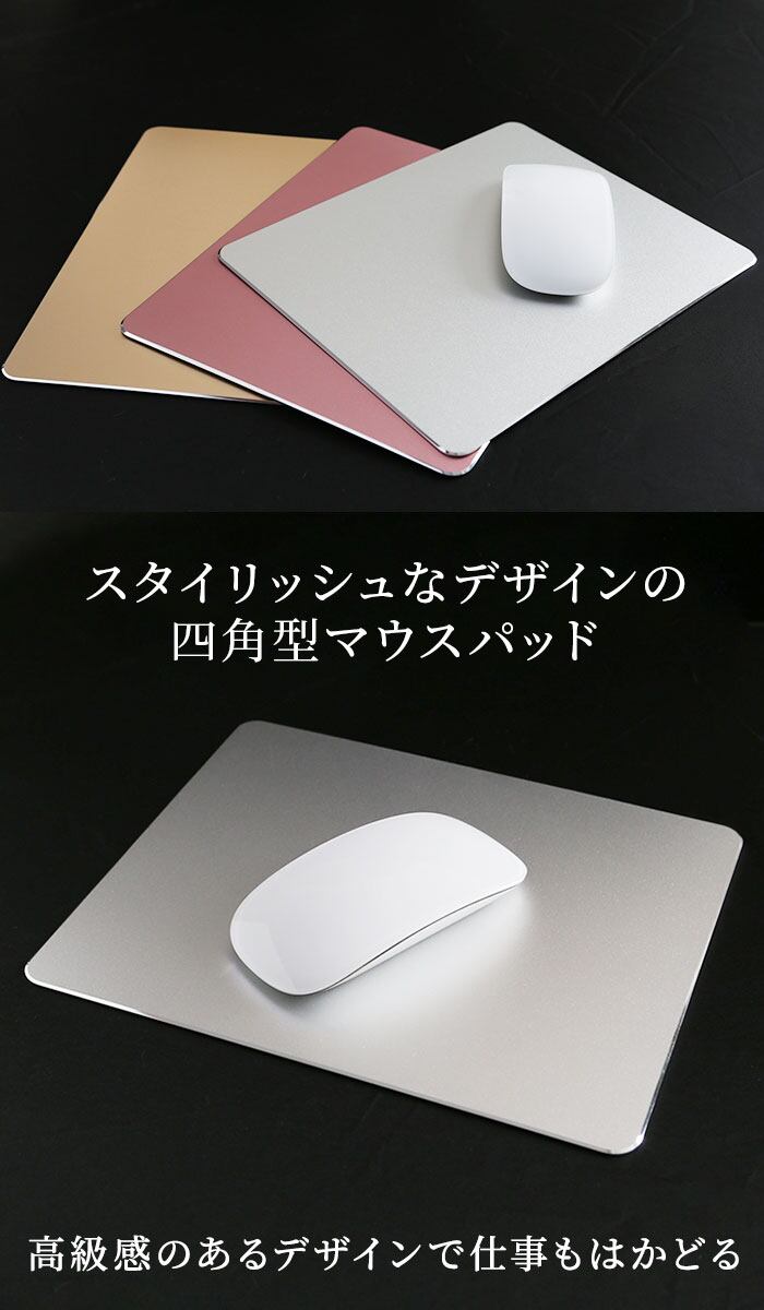 マウスパッド おしゃれ 四角 通販 マウスパット アルミ 金属 合金 シンプル かわいい 防水 リバーシブル スタイリッシュ メタル 無地 パソコン 周り PCアクセサリー 新生活 PC周辺機器