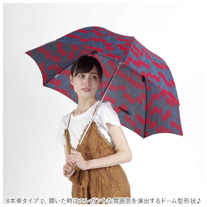 ・親骨にはしなやかなグラスファイバーを使用しているので、軽く丈夫で錆びにくいのも嬉しいポイント。8本骨タイプで、開いた時はエレガントな雰囲気を演出するドーム型形状♪