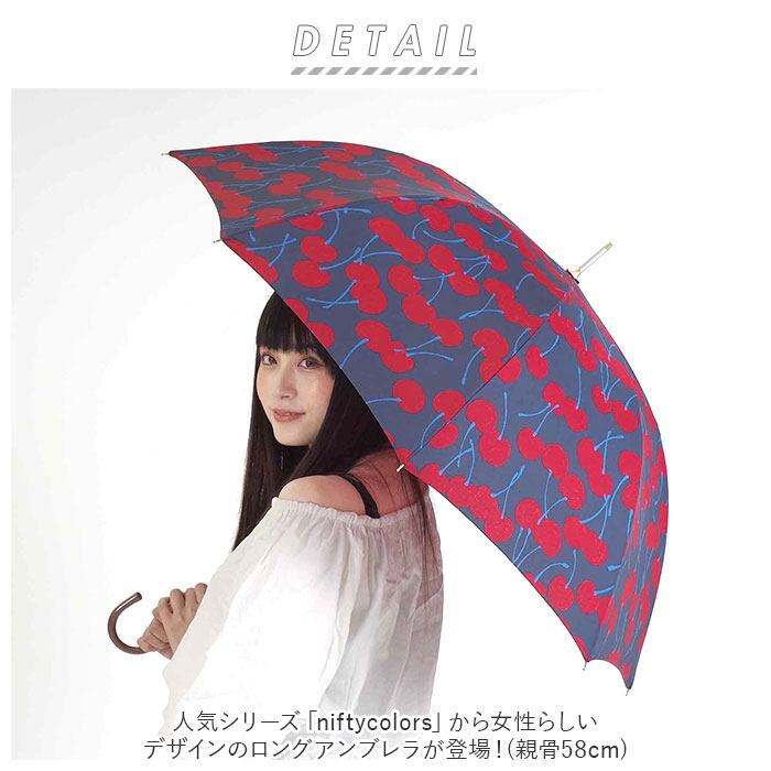 長傘 レディース 軽量 丈夫 通販 雨傘 傘 58cm ブランド nifty-colorsニフティカラーズ 手動 58センチ 親骨8本 晴雨兼用 UVカット かわいい おしゃれ 大きめ グラスファイバー 撥水 はっ水 紫外線防止