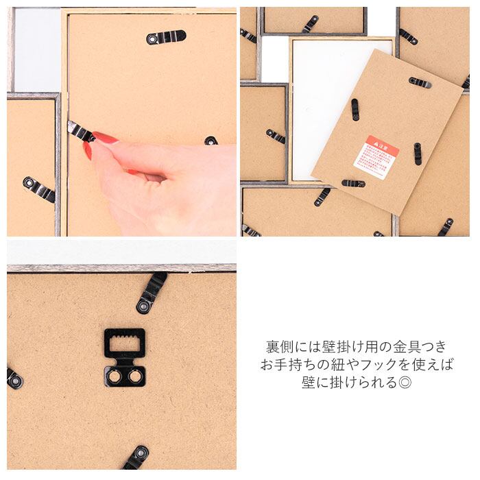 ・フォトフレームの裏側には壁掛け用の金具がついており、お手持ちの紐やフックを使えば壁に掛けられる◎