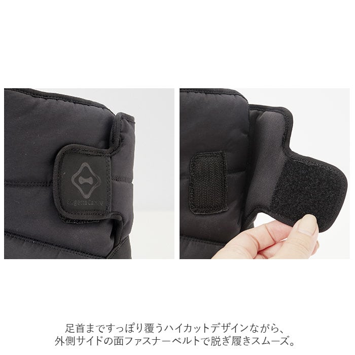 ・足首まですっぽり覆うハイカットデザインながら、外側サイドの面ファスナーベルトで脱ぎ履きスムーズ。