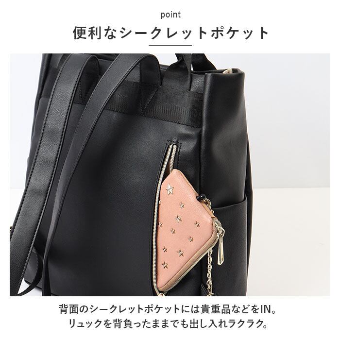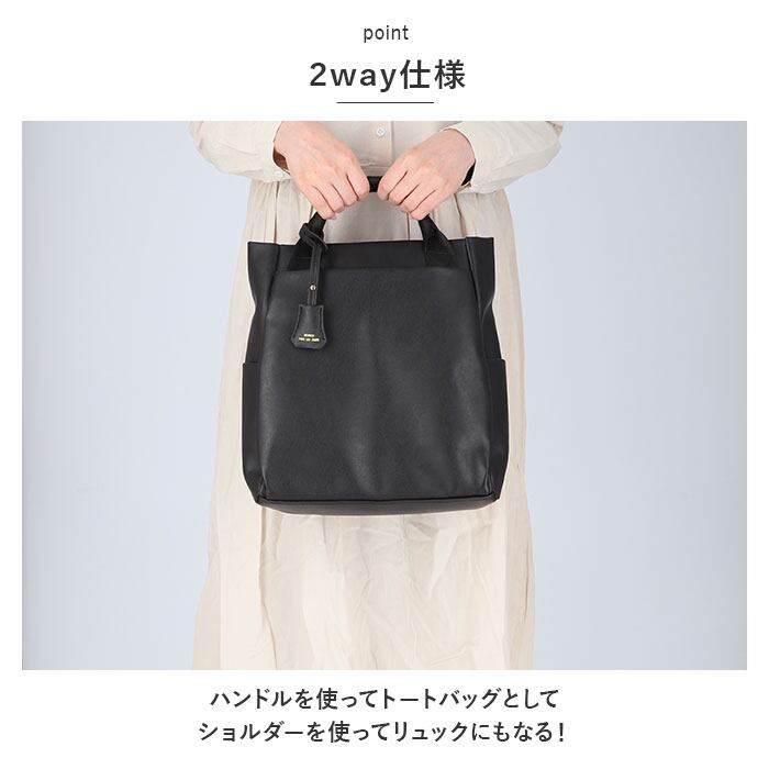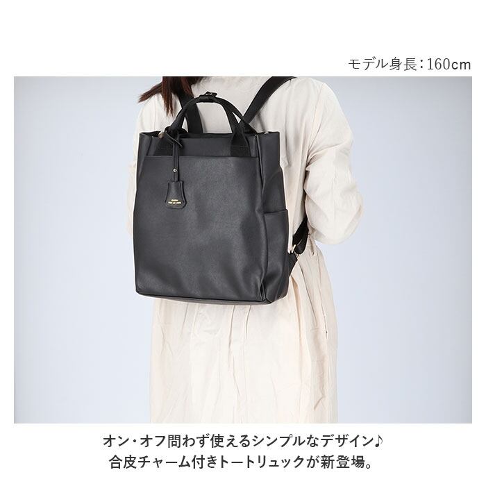 ・オン・オフ問わず使えるシンプルなデザイン♪合皮チャーム付きトートリュックが新登場。