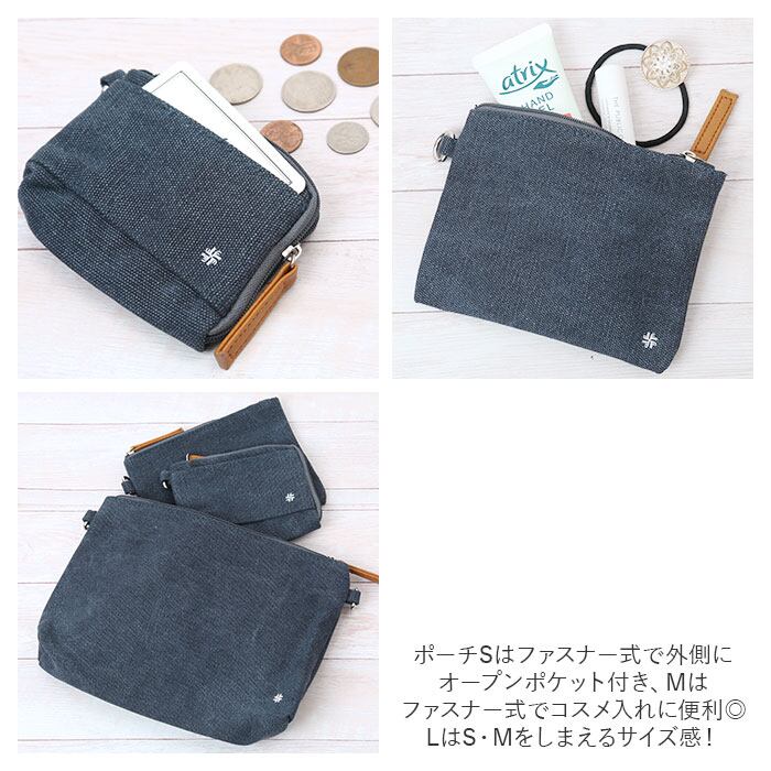 ・ポーチSはファスナー式で外側オープンポケット付き。コインを入れるのに最適!
