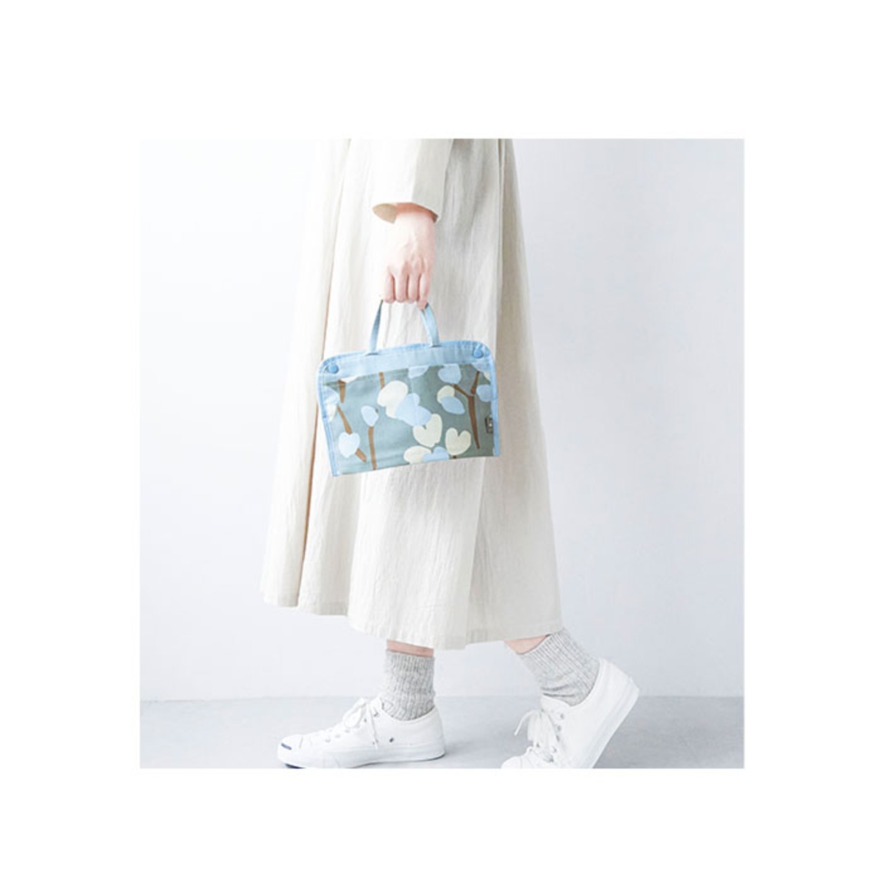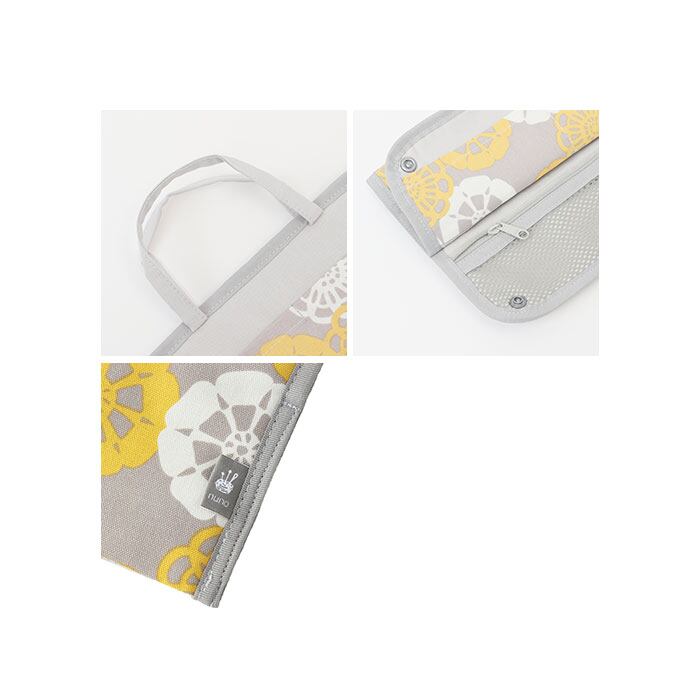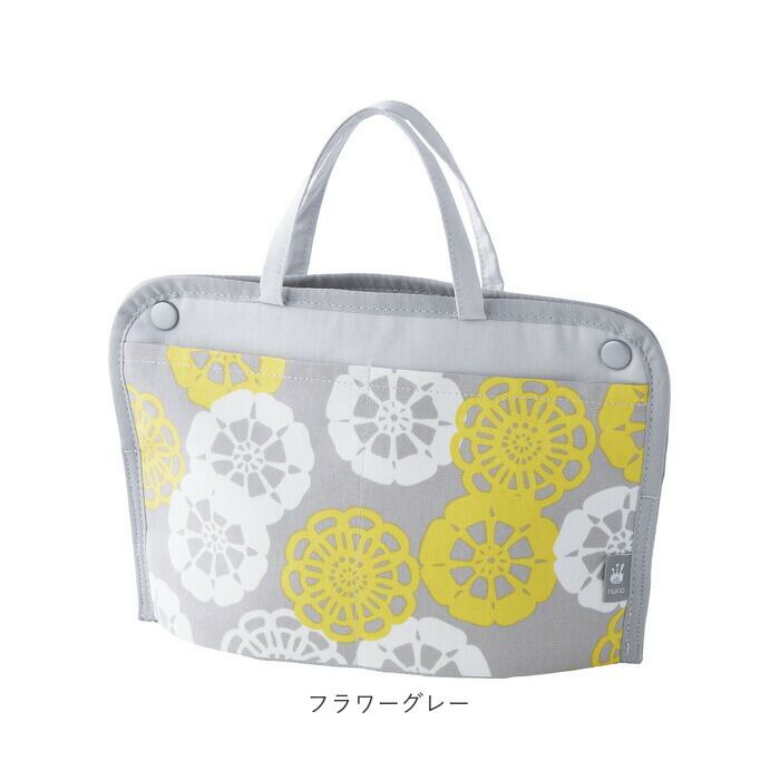・可愛らしいプリントデザイン。持ち手付きで、ちょっとしたお出かけ時にそのまま使ってもOK。