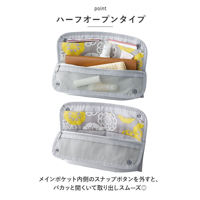 ・メインポケット内側のスナップボタンを外すと、パカッと開くいて取り出しスムーズ◎