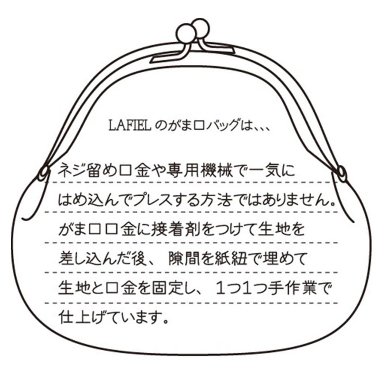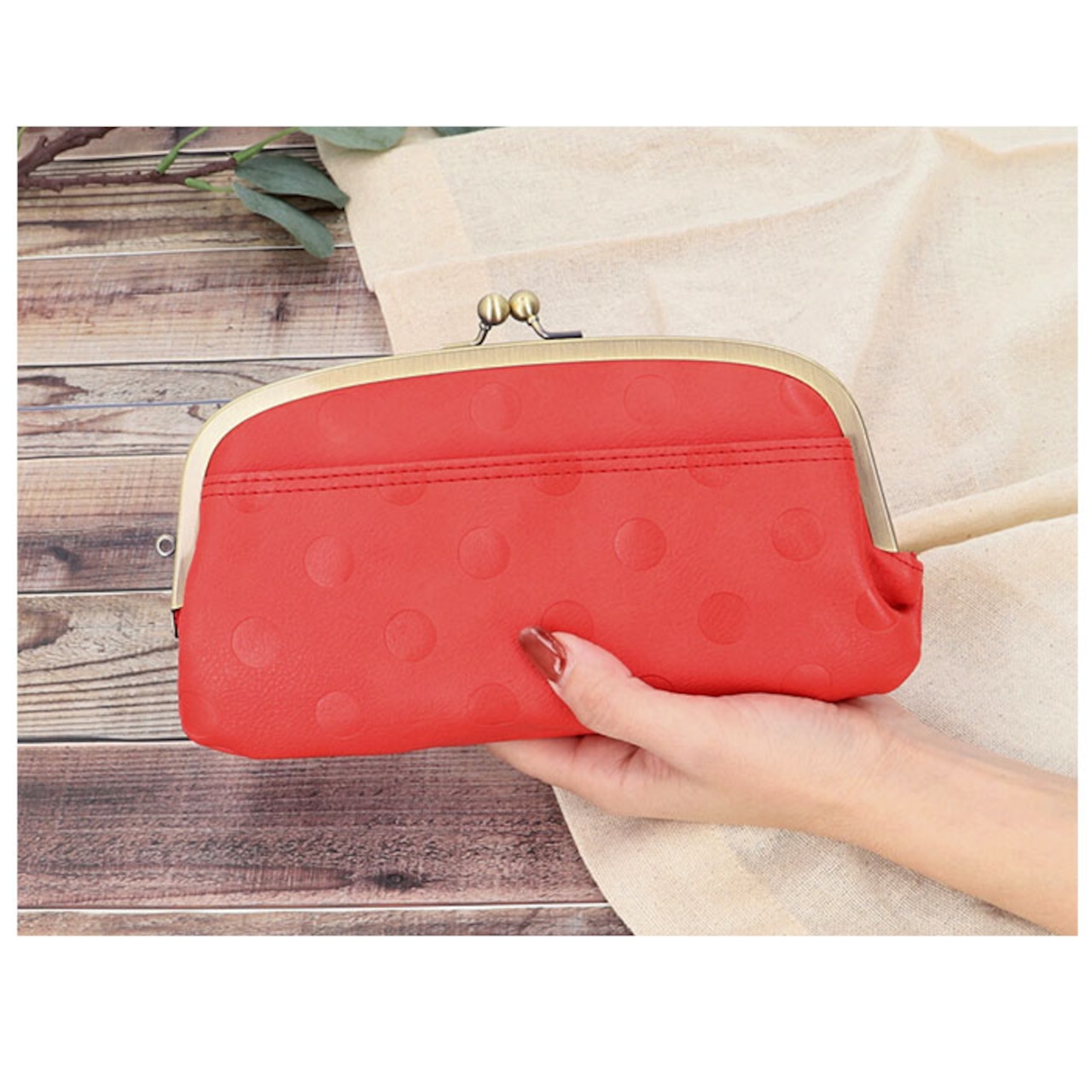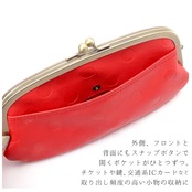 ・開口部には昔懐かしいがま口金具を使用し、ワンタッチで開け閉めが楽ちん。お財布の中がサッと見渡せて、コインやお札の取り出しもスムーズ。