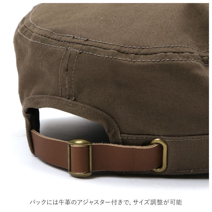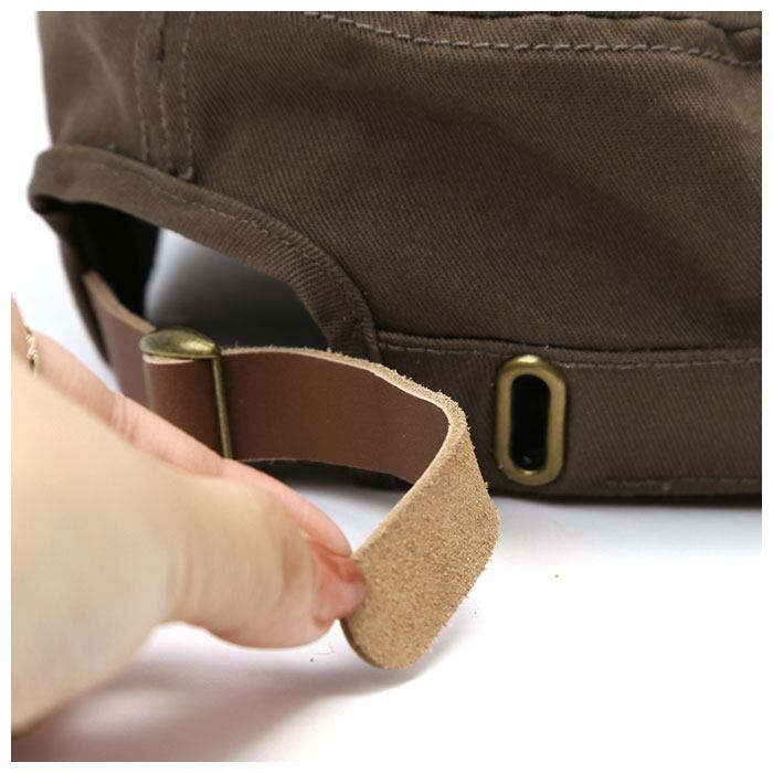 ・バックには牛革のアジャスター付きで、サイズ調整が可能。