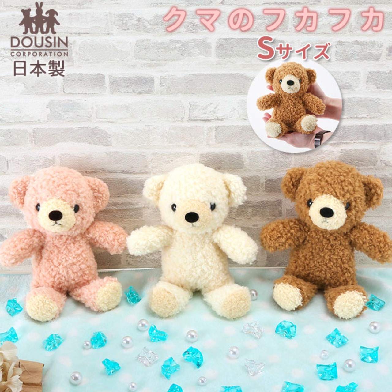 くま ぬいぐるみ 通販 クマのフカフカ Sサイズ 日本製 童心 ふわふわ ギフト 贈り物 プレゼント クリスマス 誕生日 かわいい バースデー ウェルカムベアー ブラウン クリーム ローズ お人形 熊 ベアー 国内製