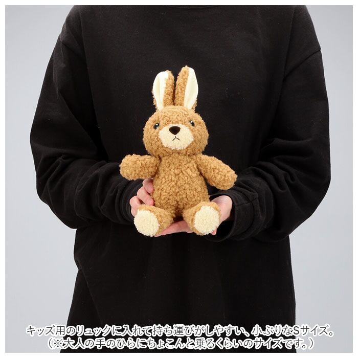・キッズ用のリュックに入れて持ち運びがしやすい、小ぶりなSサイズ。(※大人の手のひらにちょこんと乗るくらいのサイズです。)フワモコでキュートなウサギさんといつでも一緒にお出かけ♪