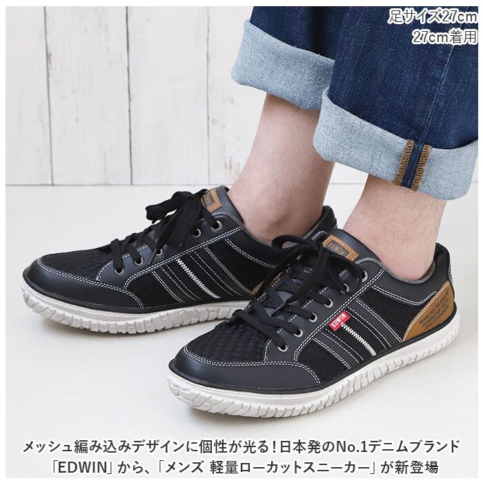 ・メッシュ編み込みデザインに個性が光る!日本発のNo.1デニムブランド「EDWIN」から、「メンズ 軽量ローカットスニーカー」が新登場。