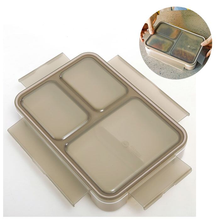 ・パッキンは一体成型、さらに仕切りの4隅は滑らか形状で、洗い物もラクラク!食器洗浄機・電子レンジの使用もOK!(※電子レンジを使用する時は、フタを外してからご使用ください)