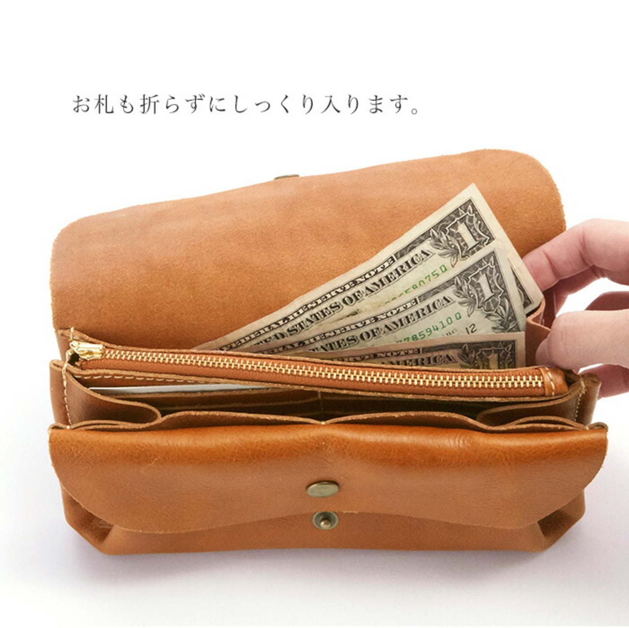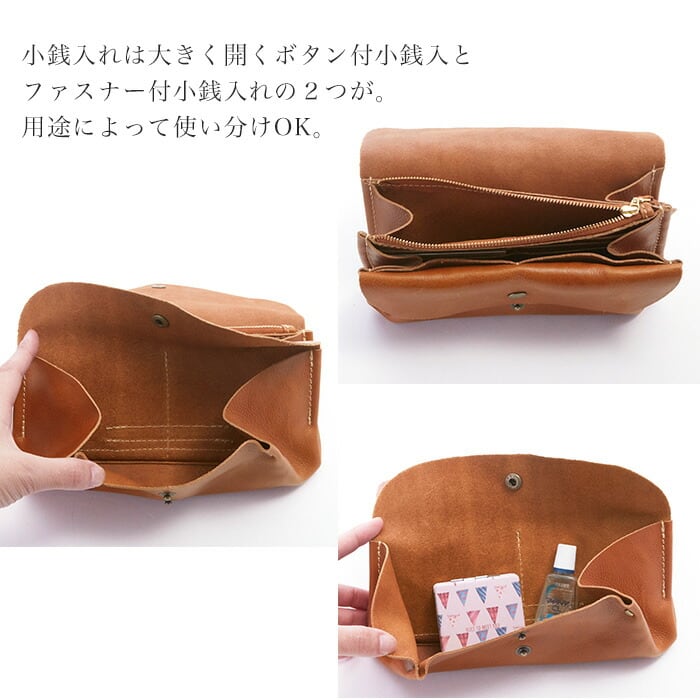 ・内側は細かく分かれているのでお金やカードはもちろん、領収書やレシートなどもたくさん入りお金の管理もしやすい
