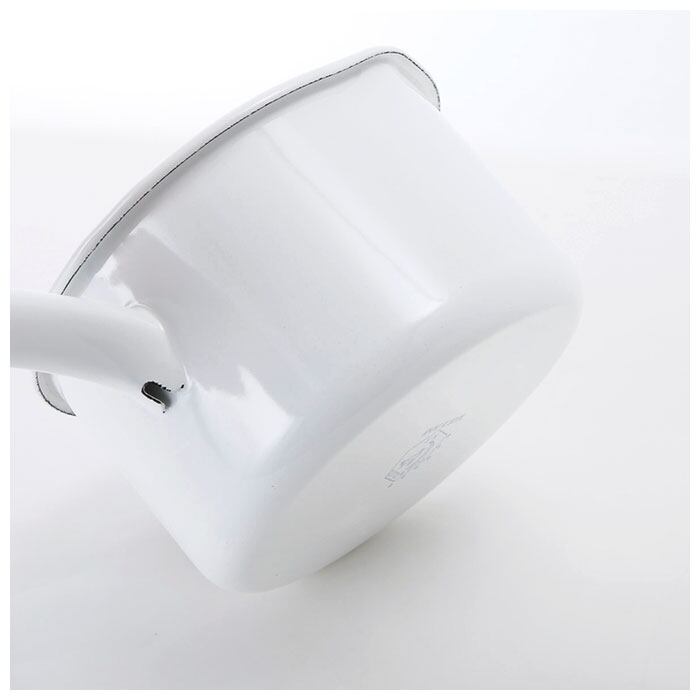 ※湯口・先端部、本体や蓋のフチ部等は鋼板の切口になるため、ホーロー釉薬がかかりにくく、下地の黒いスジが多少見られます。また、焼成時に高温の炉内で粉塵(黒点)が付着する場合があります。ご使用には支障がありませんので安心してお使いください。