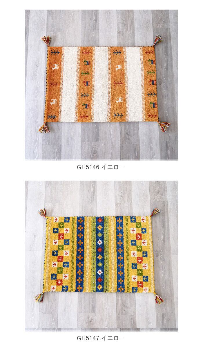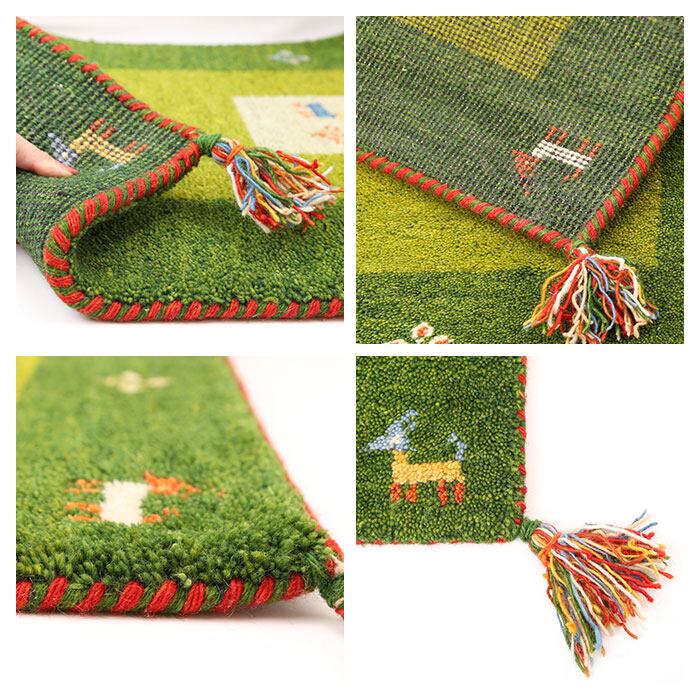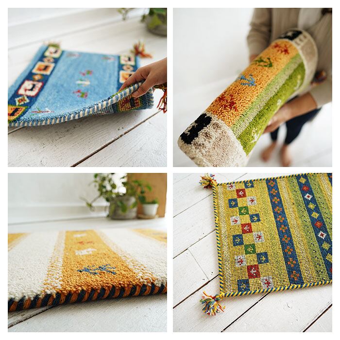 ・同じデザインでも少しずつ表情が違うのが魅力の一つ。糸を1本ずつ手で結ぶハンドノットという織り方で時間と手間をかけて作り上げられたギャッベはすべて一点もの。