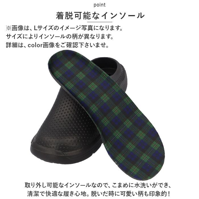 ・取り外し可能なインソールなので、こまめに水洗いができ、清潔で快適な履き心地。脱いだ時に可愛い柄も印象的!