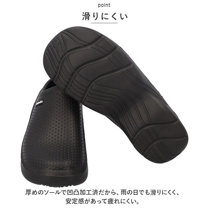 ・厚めのソールで凹凸加工済だから、雨の日でも滑りにくく、安定感があって疲れにくい。