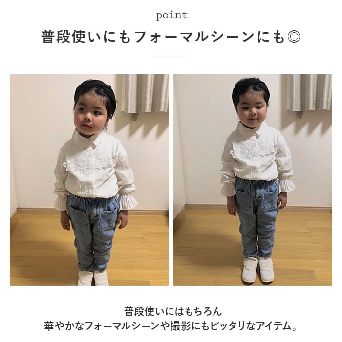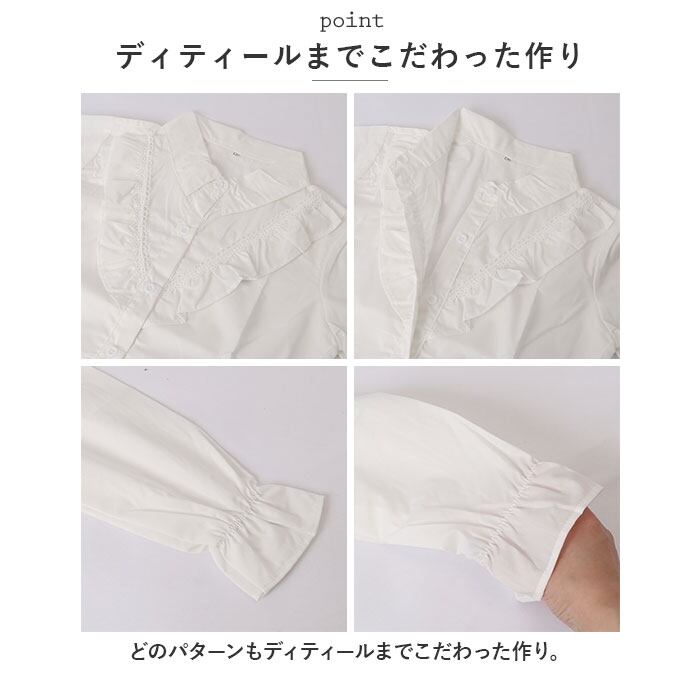 ・シンプルな白ブラウスにフリルやリボン等の組み合わせが女の子が喜ぶデザイン♪