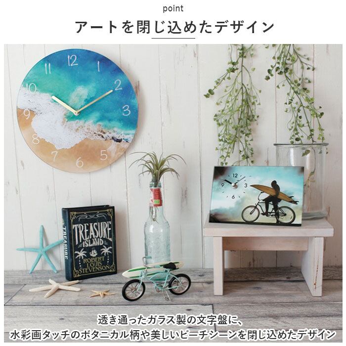 ・透明感のあるガラス素材で、リゾート感のあるお部屋を演出!癒しと共に時を刻む「ガラスウォールクロック」が新登場。