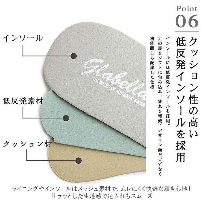 ・ライニングやインソールはメッシュ素材で、ムレにくく快適な履き心地!サラッとした生地感で足入れもスムーズ。