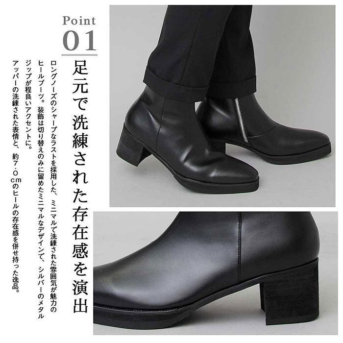・モード感漂うヒールブーツ「glabella Side Zip Heel Up Boots」が新登場。