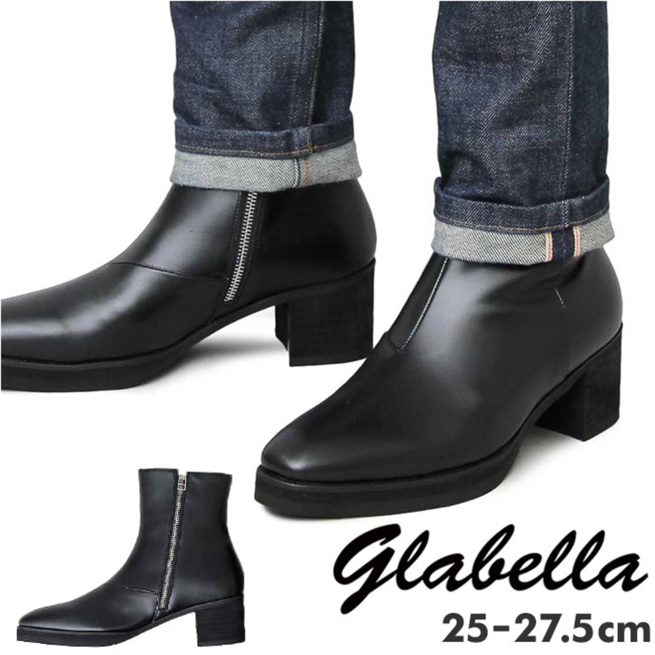 グラベラ ブーツ メンズ glabella GLBB-190 通販 ブランド ショートブーツ 厚底 フェイク レザー サイドジップ メンズブーツ おしゃれ きれいめ カジュアルシューズ シンプル 7センチ 約 5センチ ヒールブーツ 冬 紳士靴 メンズシューズ くつ シューズ