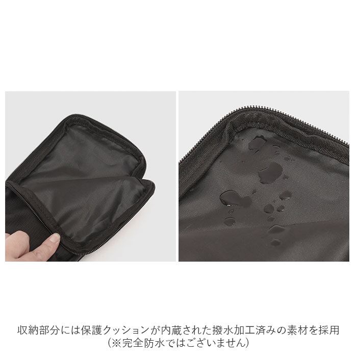 ・収納部分には保護クッションが内蔵された撥水加工済みの素材を採用。(※完全防水ではございません)