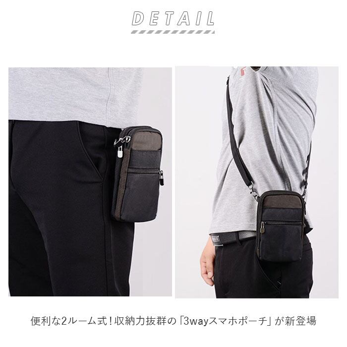 スマホ ポーチ ショルダー 通販 3way ベルトポーチ スマホポシェット ショルダーポーチ カラビナ 大きめ 二層式 2台 スマホポーチ スマホバッグ 斜めがけ ベルト 小物入れ メンズ レディース 仕事 作業用
