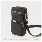・斜め掛け、カラビナ掛け、ベルト通しの3スタイルで使用できるアイテム。