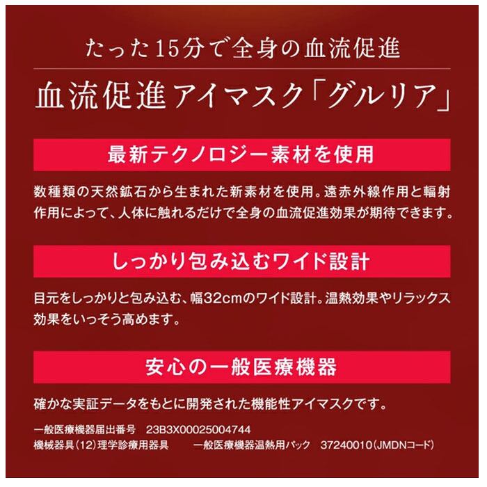 ・装着するだけで体・肌・心が整う♪現代人の疲労と老化に、グルリアから血行促進アイマスクが新登場。